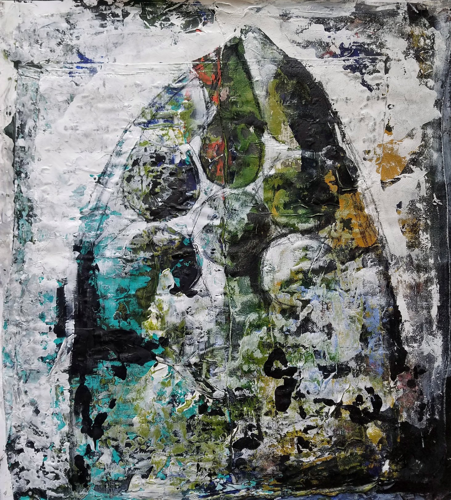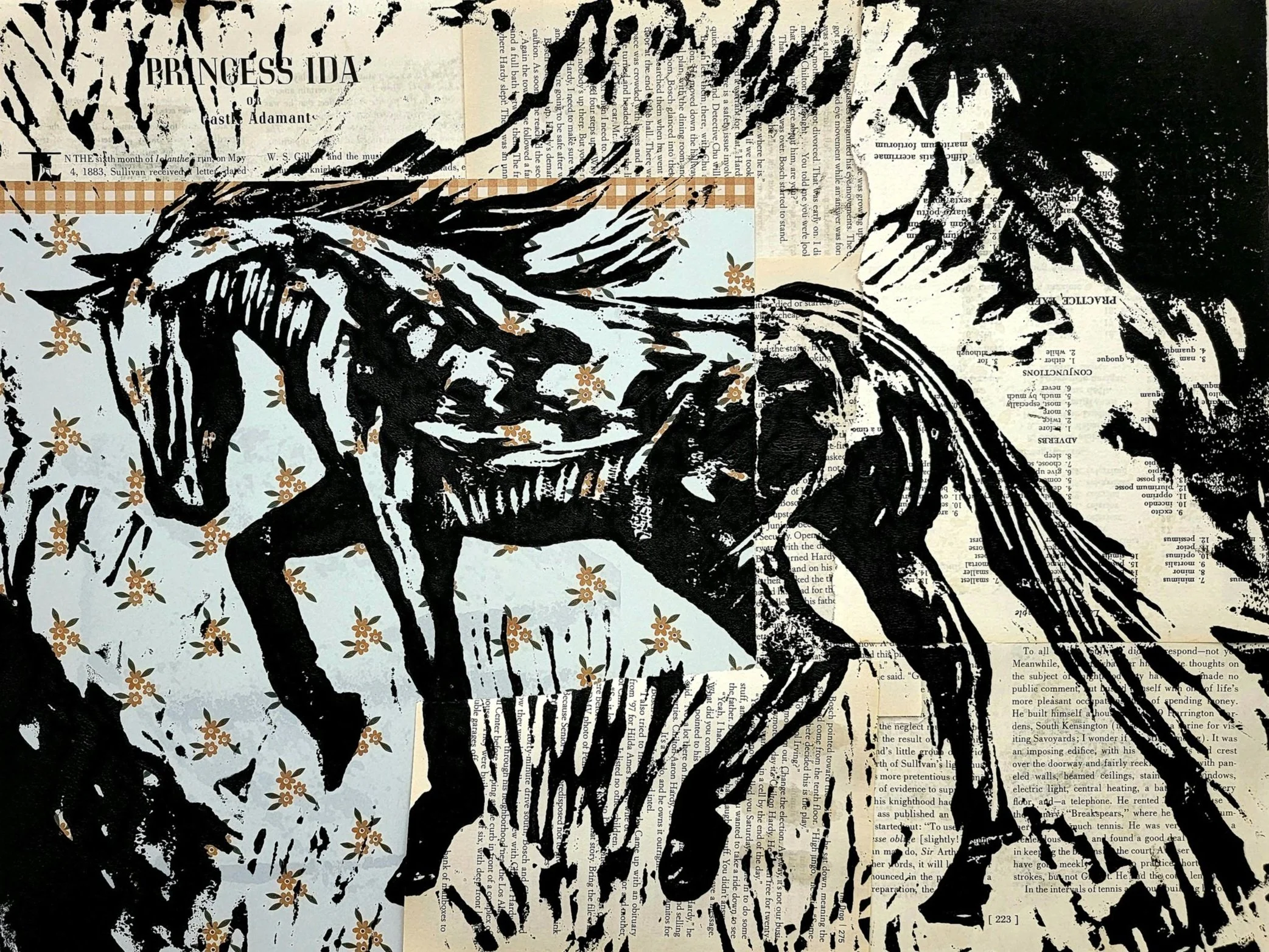 Visually I work to accomplish this goal by combining patterns, textures, moments as they come to me, often via reclaimed fabrics & objects. I then add drawn & painted responses alternated with reductive actions or coverage to accomplish surfaces full texture that reach a harmonious meeting of the past and present.